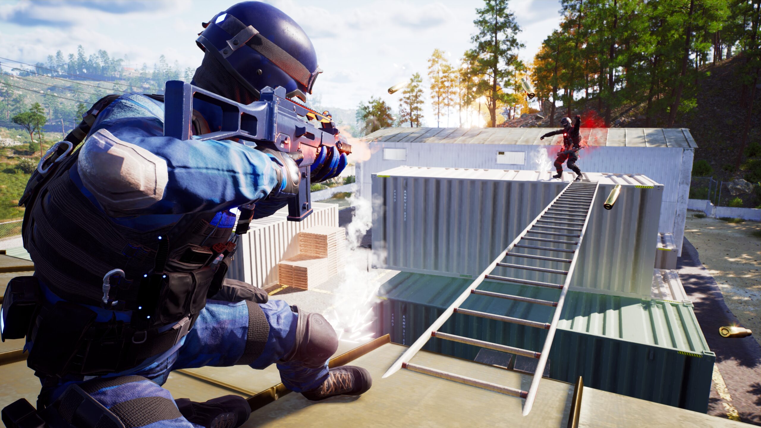 is a strategic multiplayer PvP first and third person shooter, pitting the New American Coalition versus United Communist Front in a battle for control of Arakousa, a Mediterranean paradise, where soldiers traverse via sliding, rolling, climbing, and HALO drops.